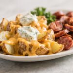 Creamy ranch-coated potatoes, smoky sausage, and melted cheese come together in one skillet for pure comfort. It’s weeknight-friendly, tailgate-approved, and perfect for potlucks or lazy Sundays.