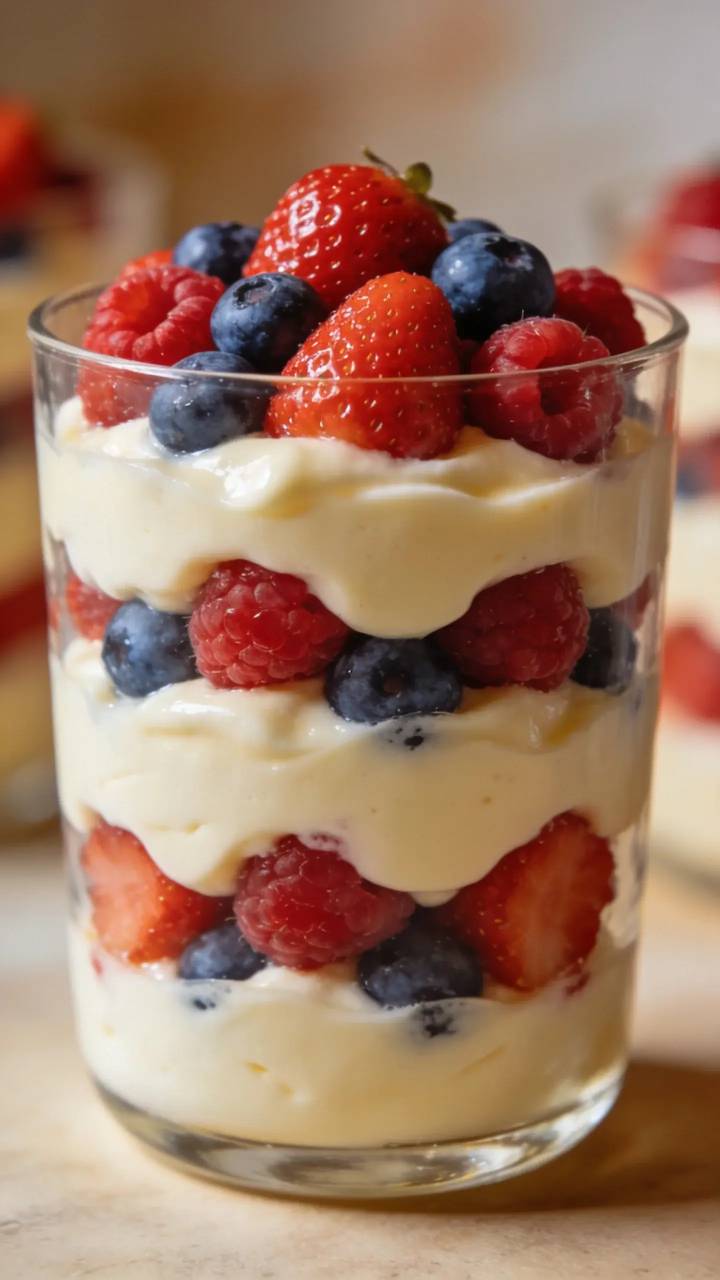 – Repeat the layers, finishing with berries on top for a bright, appetizing finish.
