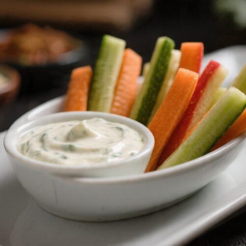 Veggie sticks with ranch dip are simple, fresh, and reliably tasty.
